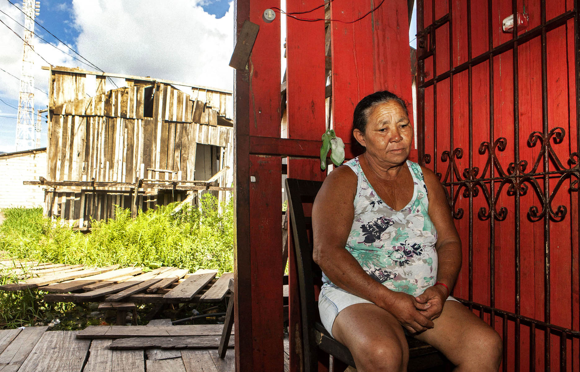 "Marlene Moraes da Silva tem o sonho recorrente de que ela e os netos morrem afogados durante a cheia (Foto cedida por Lilo Clareto à Amazônia Real)"